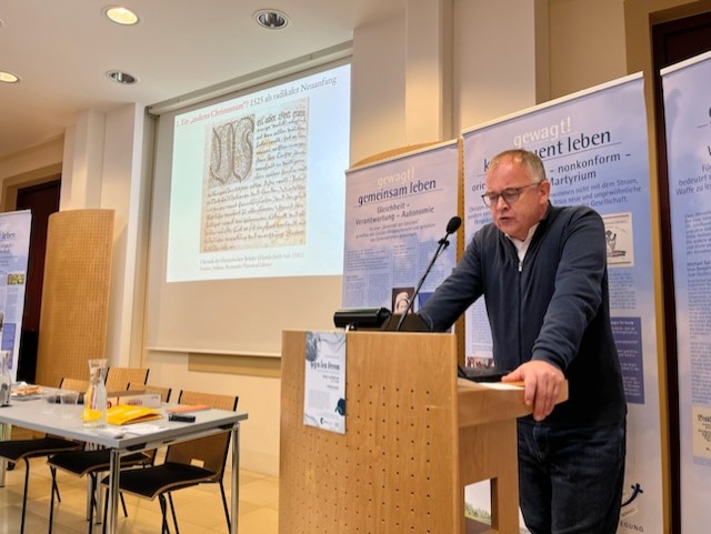 Prof. DDr. Martin Rothkegel, Professor für Kirchengeschichte der Theologischen Hochschule Elstal/Deutschland, zeichnete ein anschauliches Bild der nonkonformen Interpretation der Täufer wie Kirche gelebt werden sollte, in dem er parochiale und separatistische Modelle von Kirche einander gegenüberstellte. Rothkegel beschrieb die Einstellung der Täufer gegenüber der damaligen Staatskirche als zuhöchst kritisch: Diese befände sich unter der Herrschaft des Antichristen und deren Kleriker unter dem Einfluss Satans. Auf mehreren Ebenen positionierten sich somit die Täufer klar gegen die Staatskirche, was eine rasch einsetzende Verfolgung auslöste, die einerseits zur Ausbreitung der täuferischen Bewegung und andererseits zur Schaffung von Netzwerken und Zufluchtsorten führte, die den Austausch zwischen den sich bald als Brüder bezeichnenden Täufer förderten.