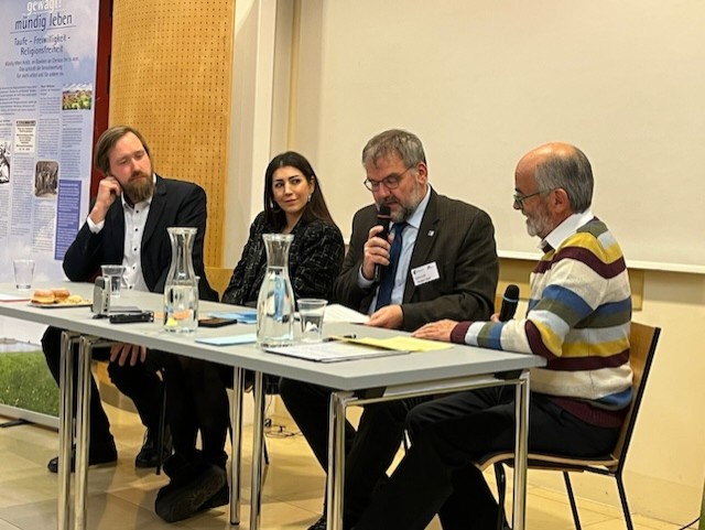 Als krönender Abschluss des Symposiums fand mit Prof. Dr. Philipp Pilhofer von der Evangelischen Theologischen Fakultät der Universität Wien/Österreich, Mag. Dr. Robert Hochgruber vom Hutterer Arbeitskreis in Tirol und Südtirol, Brixen/Italien und dem Überraschungsgast Frau Ilkay Idiskut, einer medial bekannten Volkschullehrerin, eine Podiumsdiskussion statt. Das „nonkonformistische Zeugnis“ als Vermächtnis für die Freikirchen heute wurde unter der Moderation von Pastor Dietrich Fischer-Dörl MSc von unterschiedlichen Seiten beleuchtet, die Wichtigkeit der Auseinandersetzung mit den eigenen Wurzeln hervorgehoben und Verbesserungspotential im Hinblick auf die Sensibilisierung der Freikirchen für dieses nonkonformistische Vermächtnis eingeräumt.